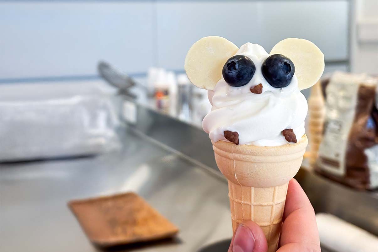 Kreation vielfältiger Softeis-Desserts im Becher, Glas und in der Tüte.