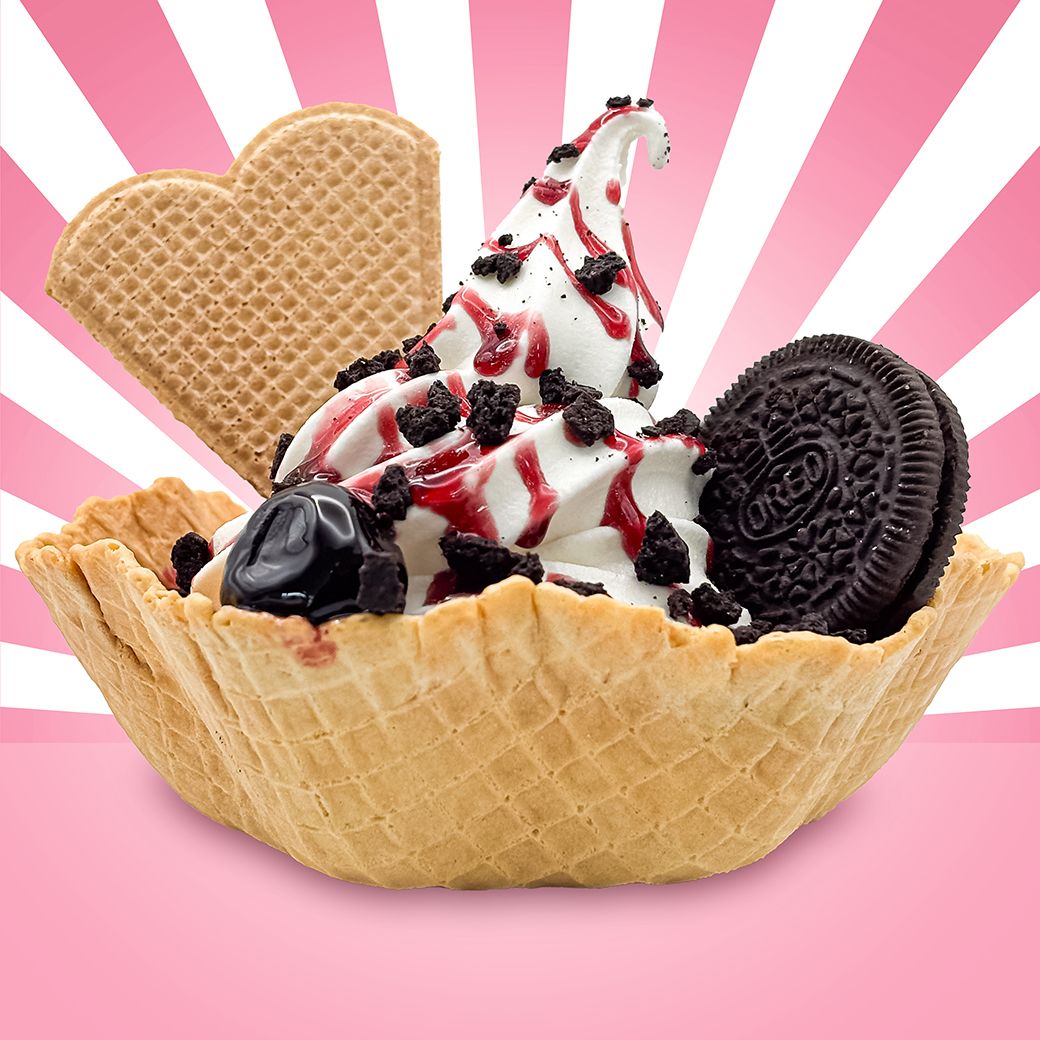 Nehmen Sie eine Freeezy Prismo süße Eistüte und füllen Sie sie großzügig mit Schokoladen Softeis.